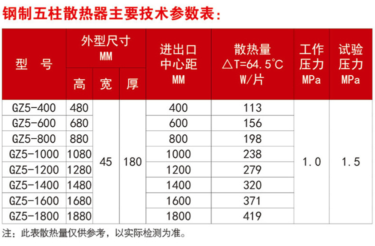 产品详情:钢制柱型钢五柱gz509散热器制造商