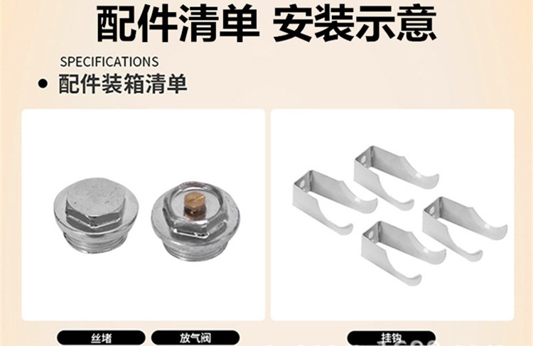 散热器先于设备放到完整的散热器供认,应将散热器存放在在安全的地方,防范平淡雨淋,并清理场地。加热系统的阀门,负责人,支管,支管和吊架均已装设,并根据规划要求完成了管道冲洗压力测试。