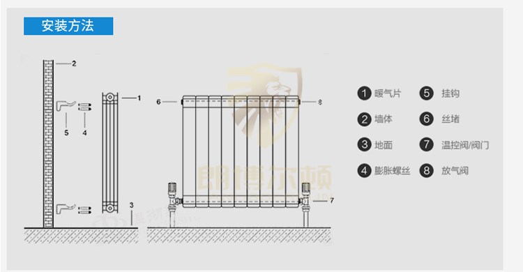 安装散热器设备时,请细心检验包装中散热器的类别,色调和配件,附件包括1个塞子,1个排气阀,3个支架。散热器设备的方式需装备进水阀和出水阀。绝不为了省钱而忽视这些过程。散热器设备的安装方式应根据本书中的设备图展开修改。