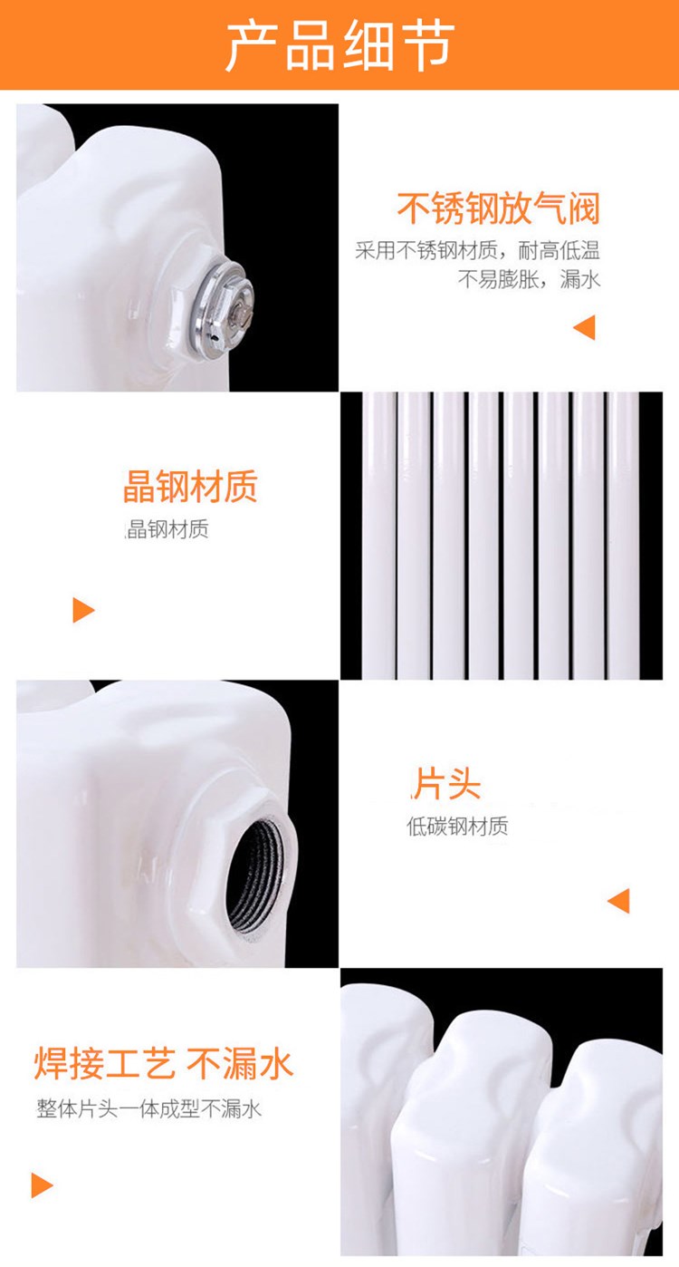 钢二柱散热器使用国家标准钢管和钢板为原材料。具有不错的散热性能,较高的加热强度,较高的耐压性,重量轻,效率高,节能功效。安装灵巧,便于屋子设计。是一种完美的装饰。钢柱散热器外形美观,现代感强,光滑细致,无装饰,易清洗,装饰性强。