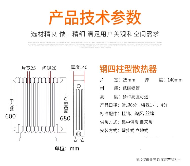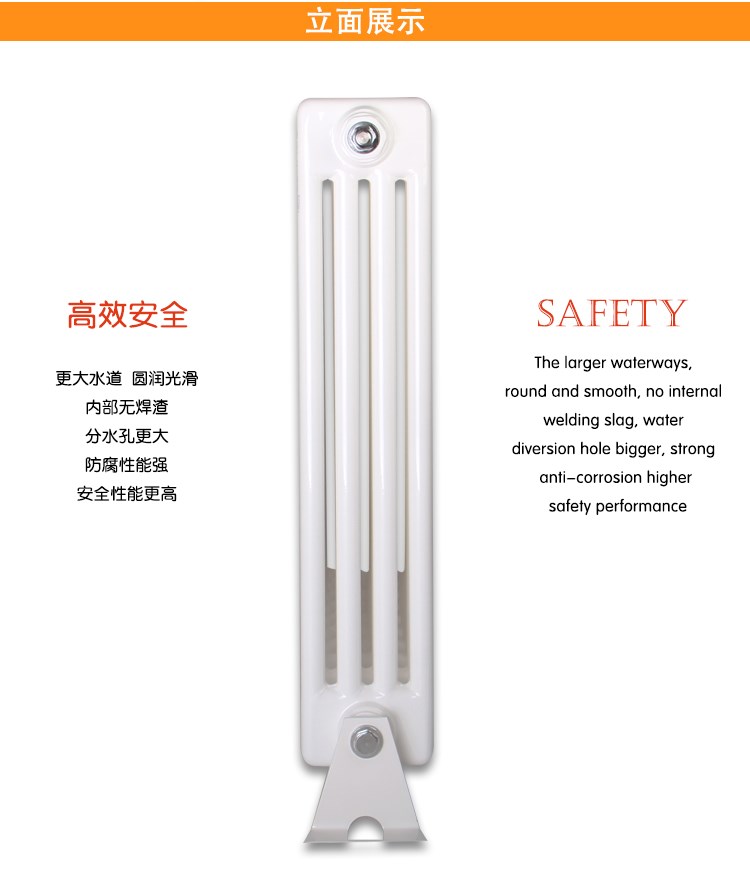 钢制四柱散热器的优点可以为用户提供暖和舒适的家庭环境;超声波焊接点定位和激光主动焊接技术,可以避免管道对接偏差,焊接接触面更大,更均匀,无焊渣,表面平整;表面喷涂均匀,润滑平整,不易结垢。
