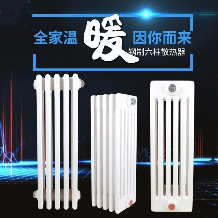车间钢制六柱散热器的大型钢柱散热器主要由水和对流片构成。工程钢管六柱散热器的散热功效主要与散热器的热介质温度有关,外部空气的温度,与空气触及的区域以及空气速度。