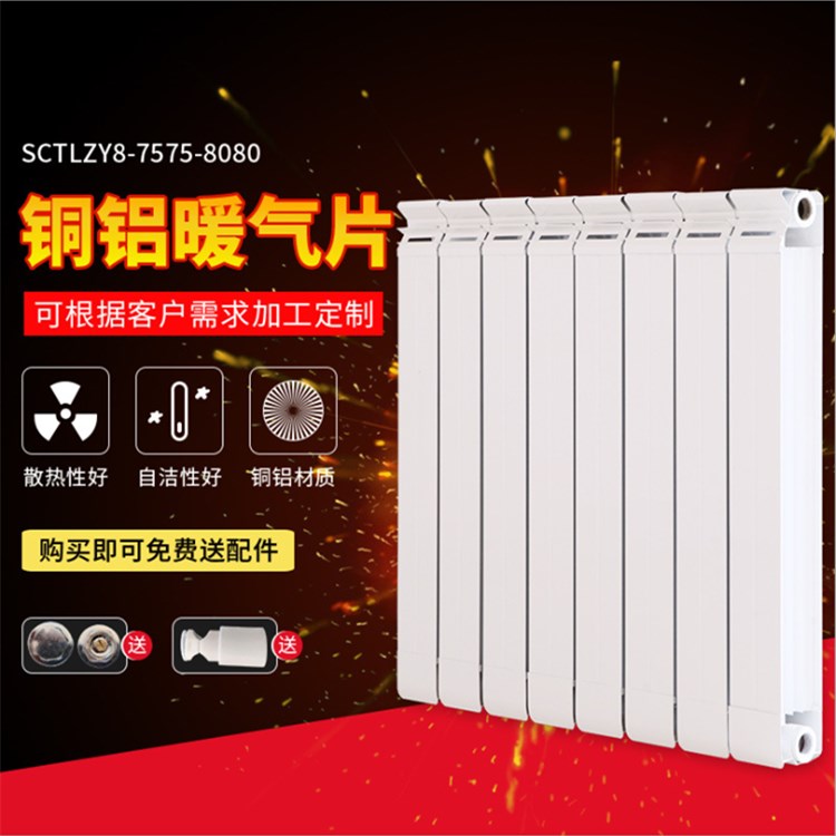 铜铝复合暖气片是现代家庭中常用的新型散热器。它的总体形状可靠,时尚,应用效用和成本效用远大于同类产品。近年来,它早就更加普遍地用以室内装饰中。步骤:用户和技术人员首先根据家庭空间的具体情形辨别出要采用的散热器的类别和数目,然后用户签定与散热器采购和施工单位签订合同,以避免设备质量和使用过程中的凶险。用户积聚美德并做好事的那一刻首先需施工方确保加热功效。